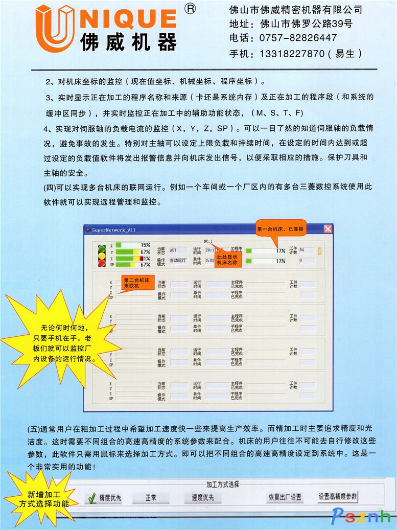 佛威公司目前開發(fā)生產(chǎn)的產(chǎn)品有三軸聯(lián)動的立式、四軸聯(lián)動的臥式數(shù)控加工中心、數(shù)控銑床及數(shù)控鉆床等產(chǎn)品,其中數(shù)控系統(tǒng)采用三菱、西門子、發(fā)那科等著名品牌,直線導軌、滾珠絲桿采用日本THK產(chǎn)品,氣動元件采用SMC的產(chǎn)品。