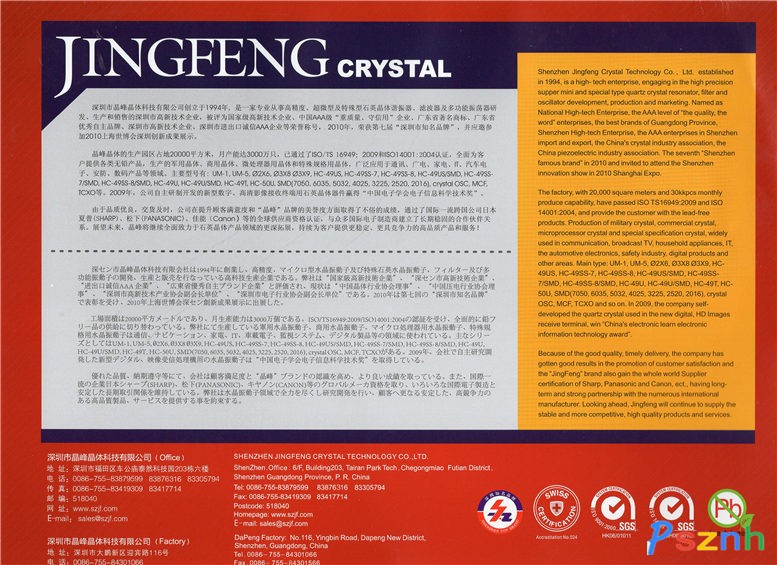 由于品質(zhì)優(yōu)良,交貨及時,公司在提升顧客滿意度和“晶峰”品牌的美譽度方面取得了不俗的成績,通過了國際一流跨國公司日本夏普(SHARP)、松下(PANASONIC)、佳能(Canon)等的全球供應(yīng)商資格認(rèn)證,與眾多國際電子制造商建立了長期穩(wěn)固的合作伙伴關(guān)系。展望未來,晶峰將繼續(xù)全面致力于石英晶體產(chǎn)品領(lǐng)域的更深拓展,持續(xù)為客戶提供更穩(wěn)定、更具競爭力的高品質(zhì)產(chǎn)品和服務(wù)!
