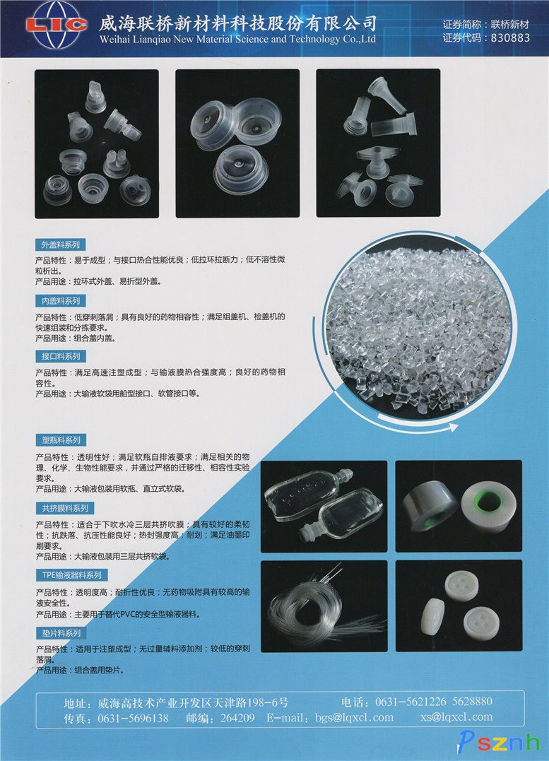 威海聯(lián)橋新材料科技股份有限公司 醫(yī)用樹脂 外蓋料 接口料 軟瓶料