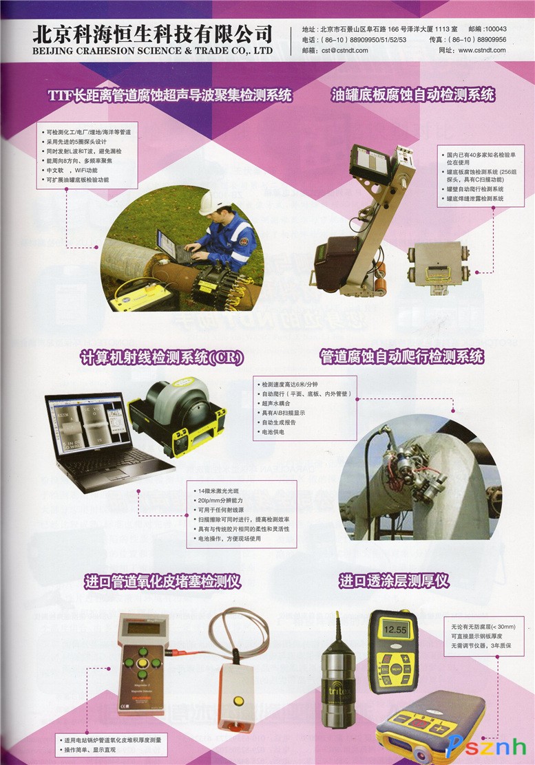 北京科海恒生科技有限公司創(chuàng)建于1999年,位于美麗的北京西山腳下,是國內(nèi)著名的專業(yè)無損檢測設(shè)備生產(chǎn)與銷售公司。其前身是中國特種設(shè)備檢測研究院及職工共同出資成立的股份制有限責(zé)任公司,在2002年經(jīng)過資產(chǎn)重組正式民營公司。 隨著公司規(guī)模的擴(kuò)大,我公司已經(jīng)與十幾家世界上著名的無損檢測設(shè)備生產(chǎn)廠商建立了良好的長期合作關(guān)系,先后引進(jìn)了超聲成像、數(shù)字射線成像、聲發(fā)射、漏磁、導(dǎo)波、電梯檢測、磁記憶等高新技術(shù),使我們的產(chǎn)品幾乎含蓋了無損檢測的所有領(lǐng)域。自主研發(fā)產(chǎn)品有:多通道數(shù)字式聲發(fā)射儀及配件、數(shù)字超聲波探傷儀、便攜式里氏硬度計(jì)、鍋爐壓力容器檢驗(yàn)工具箱、機(jī)電類設(shè)備檢驗(yàn)工具箱。 公司的業(yè)務(wù)范圍不僅覆蓋中國大陸,目前還擴(kuò)展到東南亞一帶,如新加坡、馬來西亞、巴基斯坦及香港等國家和地區(qū)。 本公司現(xiàn)為以下廠家及儀器的中國總代理: 德國華倫公司全數(shù)字化聲發(fā)射儀器及配件; 英國銀翼公司貯罐、管道掃描系統(tǒng); 美國依維森公司射線實(shí)時(shí)成像系統(tǒng); 波蘭匝瓦達(dá) NDT公司鋼絲繩檢測儀器; 德國TüV公司數(shù)字化電梯檢測系統(tǒng); 英國皮艾公司長距離管道超聲導(dǎo)波檢測系統(tǒng); 英國戴維斯公司鐵素體測定儀; 韓國沃泰克公司高精度超聲波測厚儀; 俄羅斯動(dòng)力診斷公司金屬磁記憶檢測儀器; 英國鳳凰公司各類超聲波、渦流掃描器、TOFD探頭; 英國CIT公司射線計(jì)算機(jī)成像系統(tǒng); 加拿大EP公司埋地管道防腐層檢測系統(tǒng)。 主要業(yè)務(wù): 公司的業(yè)務(wù)范圍不僅覆蓋中國大陸,目前還擴(kuò)展到東南亞一帶,如新加坡、馬來西亞、巴基斯坦及香港等國家和地區(qū)。 主要應(yīng)用: 壓力容器、管道、橋梁、飛行器、貯罐、復(fù)合材料、水泥及巖石、電器產(chǎn)品放電定位和疲勞測試的聲發(fā)射檢測; 油罐底板、罐頂、管道腐蝕缺陷漏磁檢測; 鋼絲繩斷絲、腐蝕、磨損缺陷漏磁檢測; 長距離埋地、水下、架空、跨公路及帶保溫層管道超聲導(dǎo)波腐蝕檢測; 罐壁超聲波自動(dòng)爬行測厚、B掃描、C掃描檢測; 射線實(shí)時(shí)成像、無膠片射線計(jì)算機(jī)成像及膠片掃描存檔; 電梯速度、加/減速度、距離、時(shí)間、振動(dòng)、安全鉗、曳引力、平衡、液壓壓力、轎箱質(zhì)量、電梯門閉合力、電梯門撞擊速度、動(dòng)能、電壓、微小位移等參數(shù)檢測; 磁性金屬應(yīng)力集中檢測、分析; 激光散斑應(yīng)力變形分析; 壓力容器、管道焊縫超聲相控陣、TOFD檢測。 不銹鋼中的鐵素體含量; 埋地管道防腐層檢測及評估。