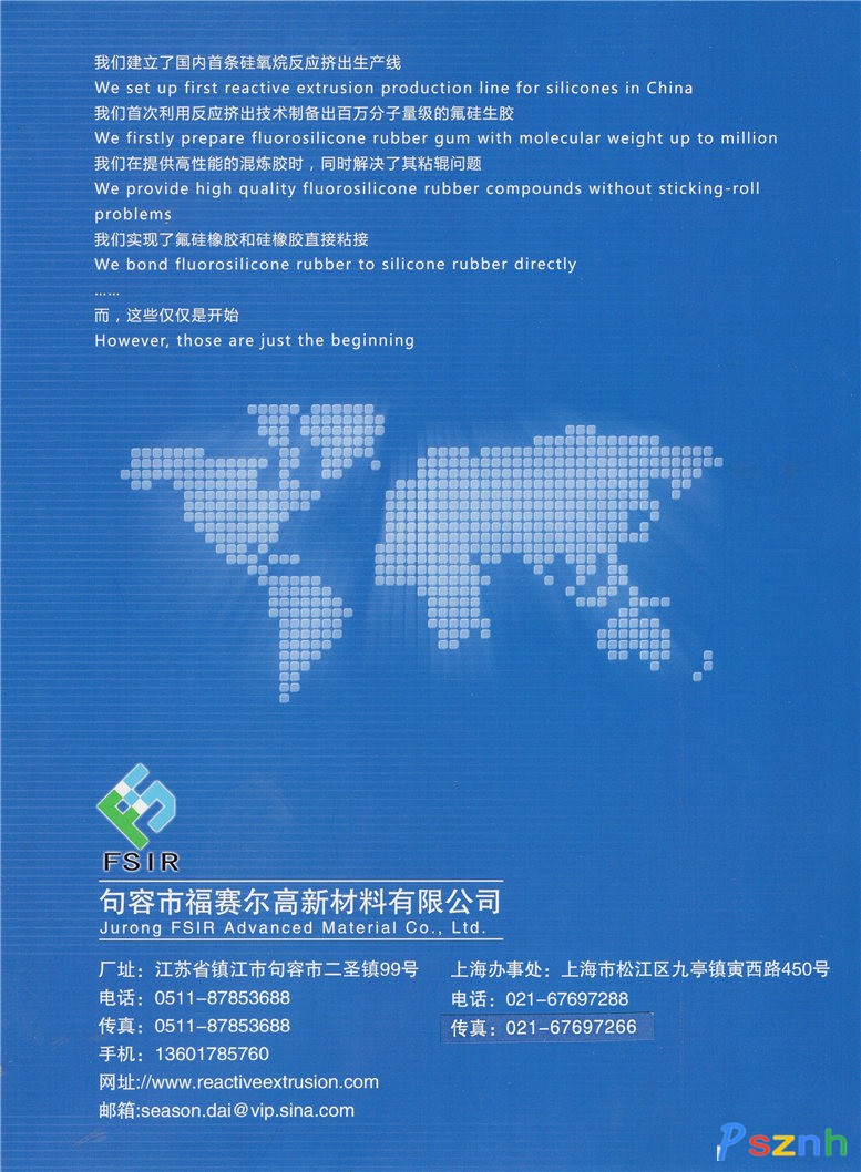 公司目前以生產(chǎn)氟硅生膠和氟硅混煉膠為主。以反應(yīng)擠出技術(shù)制備得到的氟硅生膠克服了F3單體聚合時(shí)一些技術(shù)難題,與國(guó)內(nèi)釜式生產(chǎn)的氟硅生膠相比具有產(chǎn)品質(zhì)量高,品質(zhì)穩(wěn)定等特點(diǎn),可完全取代進(jìn)口產(chǎn)品。