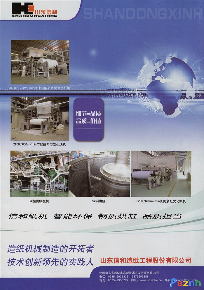 山東信和造紙工程有限公司位于山東省西部有“江北水城”美譽(yù)的聊城市。是集造紙機(jī)械制造、工程安裝調(diào)試、造紙項(xiàng)目總包為一體的專業(yè)服務(wù)于造紙行 業(yè)的綜合性公司。有一批素質(zhì)較高的原國企員工,有自己的研發(fā)隊(duì)伍,有完備、強(qiáng)大高精度的專業(yè)機(jī)加工能力和焊接能力。公司自成立以來,為幾十家造紙企業(yè)服務(wù) 幾十條生產(chǎn)線,均得到了用戶的好評(píng),為若干紙廠每家單獨(dú)承包了十條以上生產(chǎn)線,并有大量的整條生產(chǎn)線及部件出口到東南亞、西亞、南美等國家。