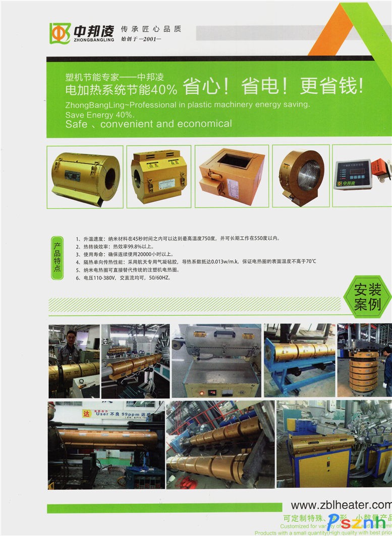 公司產(chǎn)品主要以納米加熱器、鑄銅加熱器、鑄鋁加熱器、陶瓷加熱器、云母加熱器為主;以風冷外罩、離心風機、加熱管等電器產(chǎn)品為輔。