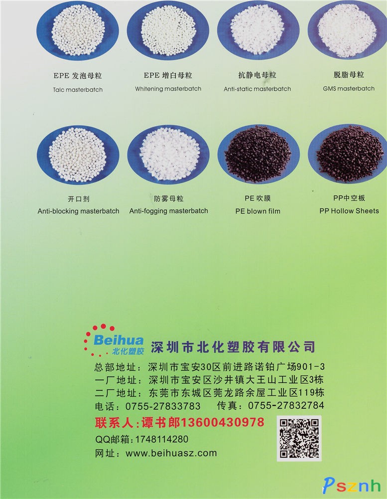 深圳市北化塑膠有限公司 母粒_色母粒_導(dǎo)電料_EPE(珍珠棉)_EPS(廣告板_餐盒)_氣泡膜(氣珠墊)_膠袋_吹瓶_EPE發(fā)泡母粒_PS增白母粒_EPE增白母粒_開口母粒_抗靜電母粒_環(huán)保母粒_增點(diǎn)擊:771 評(píng)論:0 查看原圖 |