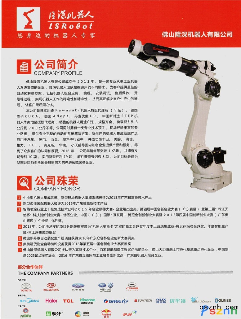 佛山隆深機(jī)器人有限公司成立于2013年,位于佛山市順德區(qū)北滘鎮(zhèn)三樂東路25號順德創(chuàng)新產(chǎn)業(yè)園內(nèi),注冊資本520萬元,公司占地面積約3000平米,是一家專業(yè)從事工業(yè)機(jī)器人系統(tǒng)集成的企業(yè)。企業(yè)先后被認(rèn)定為2015年第一批高新技術(shù)培育入庫企業(yè)、廣東省機(jī)器人骨干(培育)企業(yè)、順德區(qū)百家企業(yè)智能制造工程第五批試點(diǎn)示范企業(yè)、佛山火炬博融上市孵化基地重點(diǎn)孵化企業(yè)、2016年廣東省互聯(lián)網(wǎng)與工業(yè)融合創(chuàng)新試點(diǎn)企業(yè)、“中國制造2025”第二批試點(diǎn)示范創(chuàng)建企業(yè)等榮譽(yù)。