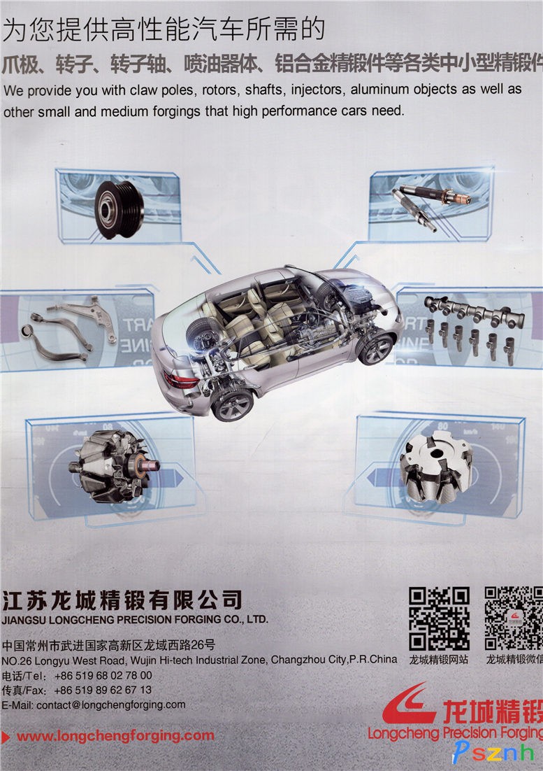 江蘇龍城精鍛有限公司位于江蘇常州武進(jìn)國(guó)家高新技術(shù)開發(fā)區(qū)。占地面積共17萬(wàn)平方米,固定資產(chǎn)9億余元,員工1600多人,其中各類專業(yè)技術(shù)人員300余人;目前是全世界首屈一指的小型精鍛件制造商,全球最大的汽車發(fā)電機(jī)精鍛爪極專業(yè)制造商之一。