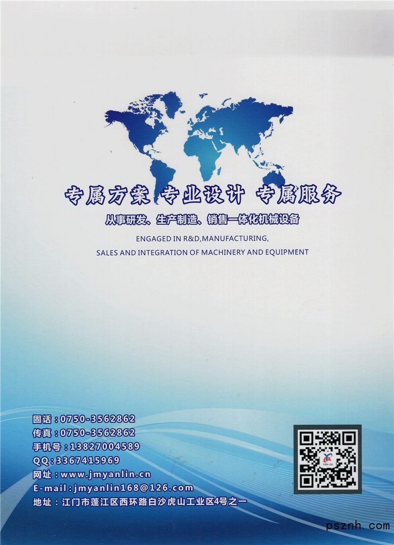 江門(mén)市燕林機(jī)械設(shè)備有限公司座落于著名“中國(guó)僑鄉(xiāng)之都”江門(mén)市。是一家從事研發(fā)、生產(chǎn)制造、銷售一體化機(jī)械設(shè)備生產(chǎn)企業(yè),“專屬方案、專業(yè)設(shè)計(jì)、專屬服務(wù)”經(jīng)過(guò)多年