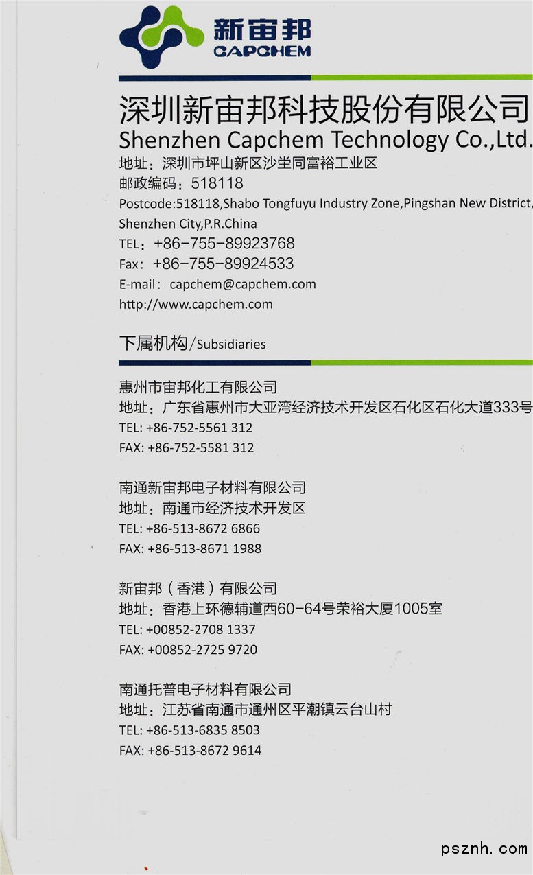 新宙邦成立于2002年,源于1996年創(chuàng)立的深圳市宙邦化工有限公司,2008年整體變更為深圳新宙邦科技股份有限公司。2010年1月8日于深圳證券交易所成功上市(股票代碼:300037)。目前擁有四家全資子公司和三家控股子公司。