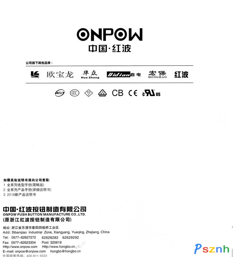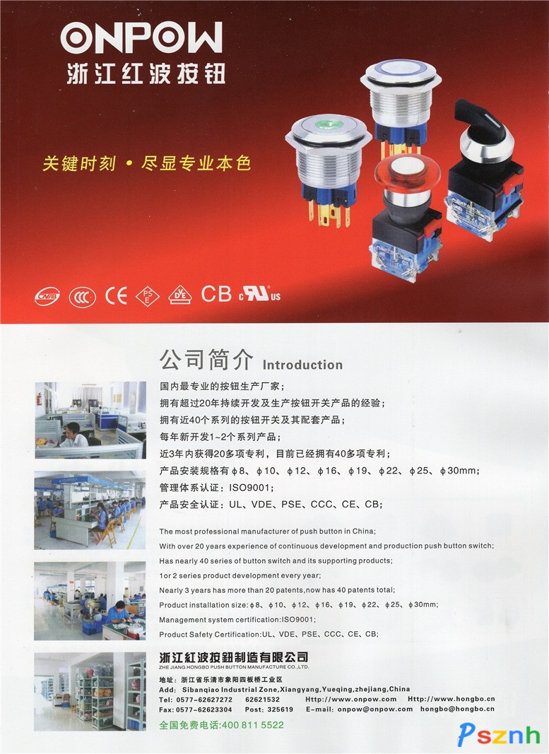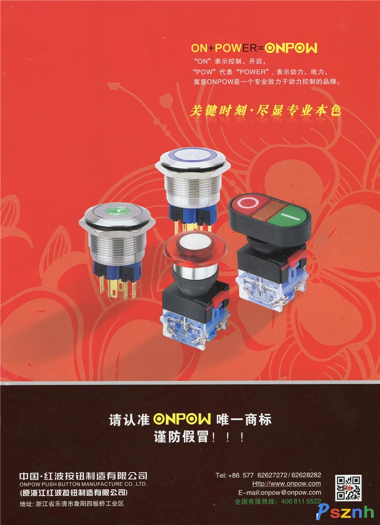 紅波按鈕制造有限公司于2012年由浙江紅波按鈕制造有限公司升級為中國·紅波按鈕制造有限公司,成為全國無區(qū)域公司,感恩所有客戶的關(guān)注,由于市場上仿冒產(chǎn)品較多,請認(rèn)準(zhǔn)“ONPOW”商標(biāo),使用其他商標(biāo)的產(chǎn)品均不屬于本公司產(chǎn)品,所有不以中國·紅波按鈕宣傳銷售的產(chǎn)品均不屬于我公司產(chǎn)品。