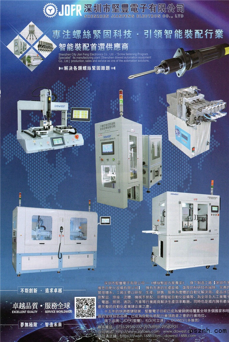 深圳市堅(jiān)豐電子有限公司--“螺絲緊固方案專家”,旗下制造工廠深圳市多維思自動化設(shè)備有限公司,擁有先進(jìn)的生產(chǎn)設(shè)備、雄厚的科研技術(shù)團(tuán)隊(duì)、完善的管理體系。工廠主要以研發(fā)、生產(chǎn)、銷售、服務(wù)為一體的自動化解決商。產(chǎn)品涉及到緊固、焊接、流體、機(jī)械手裝配、非標(biāo)智能自動化等。為全球各大工業(yè)電子、電器、照明、通訊、汽車等行業(yè)廠商解決生產(chǎn)效率難題。同時也是國內(nèi)擁有最全最完整的自動化產(chǎn)業(yè)鏈企業(yè)之一。