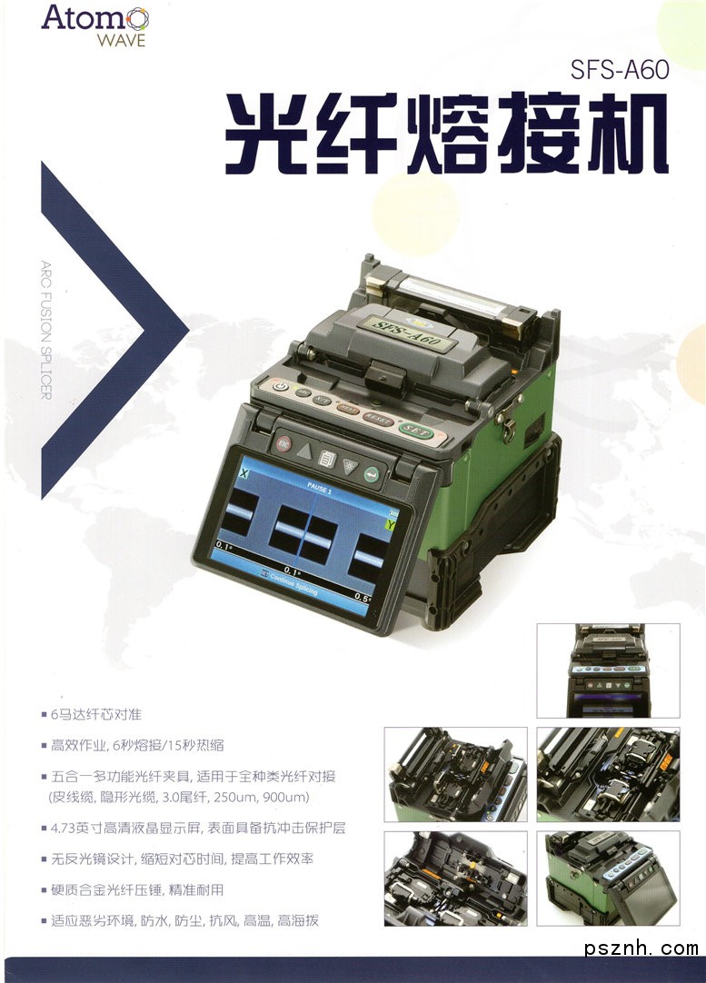 ATOMOWAV光纖熔接機(jī)器為電信領(lǐng)域提供更優(yōu)質(zhì)的高度專業(yè)化解決方案。其中,F(xiàn)TTH熱熔解決方案在過去的一年里獲得了行業(yè)多項大獎。ATOMOWAVE專注于光纖熔接、光纖測試技術(shù),SFS系列單芯/SOT系列OTDR,全面覆蓋工程專用機(jī)型、FTTH接入網(wǎng)機(jī)型、全能機(jī)型等,受到韓國KT電信、韓國SK電信、西班牙Telefonica電信、中國電信、中國聯(lián)通、中國移動,以及眾多通信工程公司的一致好評。