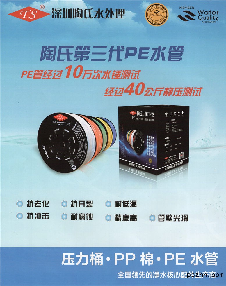 深圳市陶氏水處理設(shè)備技術(shù)開發(fā)有限公司,國內(nèi)最專業(yè)凈水器PE水管、壓力桶、PP棉濾芯、濾瓶、膜殼等凈水機(jī),純水機(jī)配件生產(chǎn)批發(fā)廠家。陶氏品牌PE水管,PP棉濾芯,壓力桶,濾瓶,膜殼暢銷全國近30多個(gè)省,市,自治區(qū)以及直轄市,并遠(yuǎn)銷北美,歐洲,中東,東南亞等五十多個(gè)國家和地區(qū)。2015年入駐美國WQA,成為凈水安全品質(zhì)保障協(xié)會(huì)會(huì)員,并榮獲美國NSF認(rèn)可證書,國內(nèi)衛(wèi)生部頒發(fā)涉水批件,品質(zhì)保證,選購無憂。