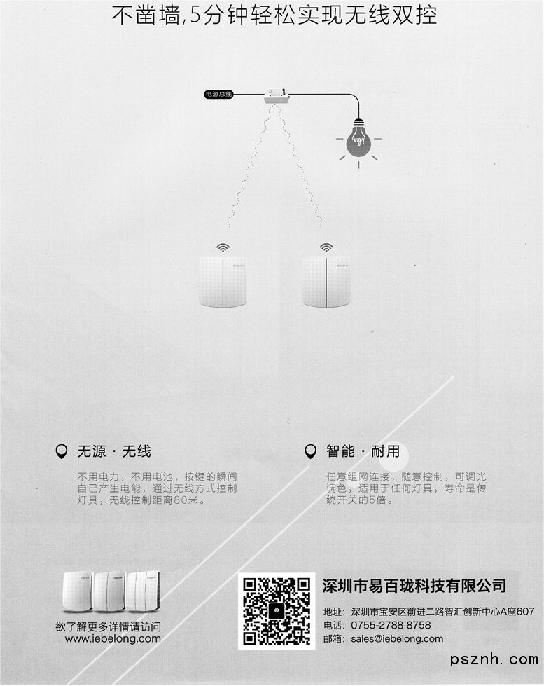 深圳市易百瓏科技有限公司專(zhuān)注于無(wú)線(xiàn)電工開(kāi)關(guān)領(lǐng)域的智能化研發(fā),集科研、制造、銷(xiāo)售于一體,為全球各地客戶(hù)提供“微能量采集”技術(shù)應(yīng)用及產(chǎn)品服務(wù),是一家科研、銷(xiāo)售、服務(wù)綜合性企業(yè)。易百瓏基于“微能量采集”技術(shù)衍生出的無(wú)線(xiàn)動(dòng)能系列開(kāi)關(guān),以全球化認(rèn)證、(申請(qǐng)國(guó)際專(zhuān)利PCT)和國(guó)家專(zhuān)利技術(shù)為核心,旨在實(shí)現(xiàn)智能產(chǎn)品家居化、普及化,讓真正的科技綠色環(huán)保電工產(chǎn)品成為大眾觸手可及的利益。在經(jīng)濟(jì)全球化不斷加速的背景下,科技是生產(chǎn)力和加速度的強(qiáng)勁引擎。未來(lái),越來(lái)越多的領(lǐng)域?qū)?huì)對(duì)創(chuàng)新提出更高要求,科技以人為本的理念也將更為突顯,易百瓏科技將不斷致力于安全、節(jié)能、環(huán)保、綠色產(chǎn)品的研發(fā),改善人居生活質(zhì)量。