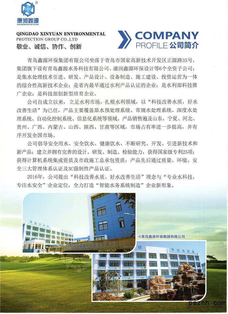 青島鑫源環(huán)保集團有限公司 原水預(yù)處理系統(tǒng) 常規(guī)工藝處理系統(tǒng) 深度工藝處理系統(tǒng)