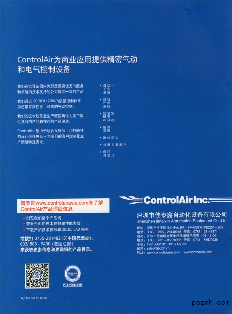 美國Controlair(康氣通)公司是一家世界領(lǐng)先的生產(chǎn)用戶自動化工業(yè)設(shè)備,過程控制系統(tǒng)和儀器,實驗室研究和分析,能源管理,流體動力,機器人和閥門自動化應(yīng)用相關(guān)精密氣動和電氣控制產(chǎn)品的世界級制造商。公司通過ISO-9001/2008國際質(zhì)量體系認證,確保嚴格控制產(chǎn)品規(guī)范和生產(chǎn)流程,以生產(chǎn)高性能,高可靠性的氣動控制產(chǎn)品。