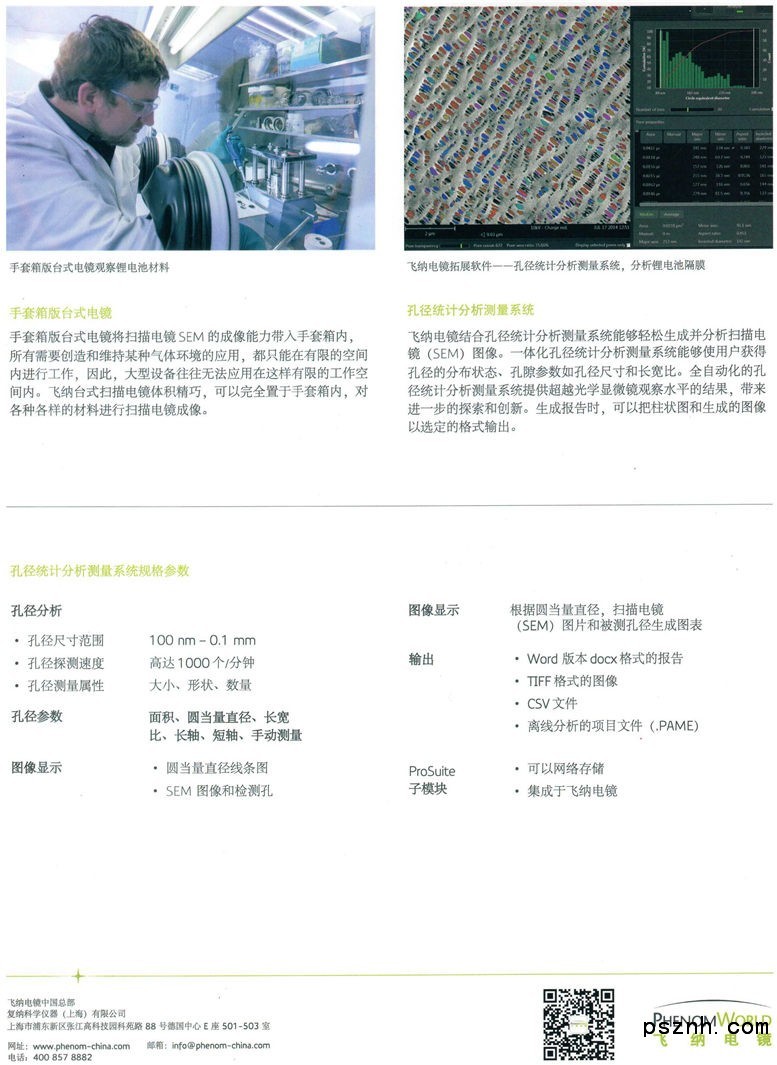 復(fù)納科學(xué)儀器(上海)有限公司——飛納中國,2012 年創(chuàng)立于上海,為高校,企業(yè)和研究所提供臺式掃描電子顯微鏡,及與臺式掃描電鏡相關(guān)的技術(shù)支持和測試服務(wù)。復(fù)納科學(xué)儀器(上海)有限公司成立以來,一直專注顯微技術(shù),致力于實現(xiàn)掃描電鏡平民化。復(fù)納科學(xué)儀器(上海)有限公司——飛納中國提出飛納學(xué)校 (Phenom University)的概念,為用戶提供從掃描電鏡基礎(chǔ)理論到 Level 5 應(yīng)用工程師的進階培訓(xùn),在上海、北京、廣州設(shè)立了測試中心和售后服務(wù)中心,目前飛納在中國已經(jīng)擁有超過 500 名用戶。