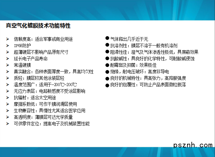 東莞市優(yōu)上實(shí)業(yè)有限公司專業(yè)納米真空鍍膜業(yè)務(wù)及設(shè)備的研發(fā)和銷售。 電子電器的PCBA零部件,LED及各種線路板進(jìn)行防水(IP68),防潮,防腐蝕,防鹽霧,防紫外線, 高低溫, 絕緣等表面涂裝處理工藝。 Parylene涂裝技術(shù)優(yōu)于固體材料本身的優(yōu)越性能, 達(dá)到提高產(chǎn)品質(zhì)量、延長(zhǎng)產(chǎn)品壽命、 節(jié)約能源和獲得顯著技術(shù)經(jīng)濟(jì)效益的作用。