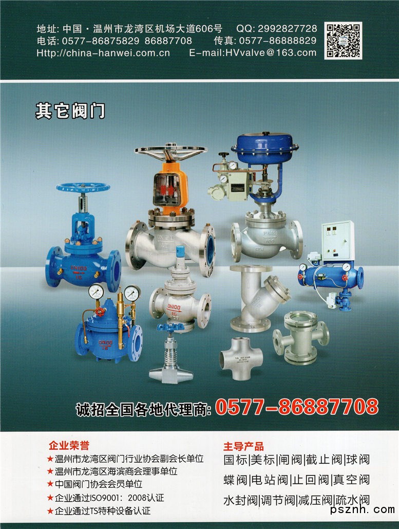 漢威閥門有限公司創(chuàng)建于1995年,集豐富的設(shè)計(jì)、研發(fā)、管理與服務(wù)經(jīng)驗(yàn)的閥門制造企業(yè)、是我國較早生產(chǎn)引進(jìn)設(shè)備配套閥門的廠家之一,系中國質(zhì)量認(rèn)證中心ISO9001:2008質(zhì)量管理體系認(rèn)證、TS特種設(shè)備制造許可證單位。公司技術(shù)力量雄厚,運(yùn)用CAD進(jìn)行產(chǎn)品輔助設(shè)計(jì)及CIMS計(jì)算機(jī)網(wǎng)絡(luò)管理,擁有高精度CNC加工設(shè)備和完善的檢測設(shè)備。按照中國、美國、日本、德國、英國、瑞典、意大利等標(biāo)準(zhǔn)生產(chǎn),還可根據(jù)用用戶特定要求非標(biāo)生產(chǎn)。再上傳實(shí)踐中,積極消化吸收國內(nèi)外先進(jìn)技術(shù),先后開發(fā)了三通球閥、食品機(jī)械等一批代表性產(chǎn)品,由于品質(zhì)可靠,價(jià)格合理,深受國內(nèi)外客戶好評。