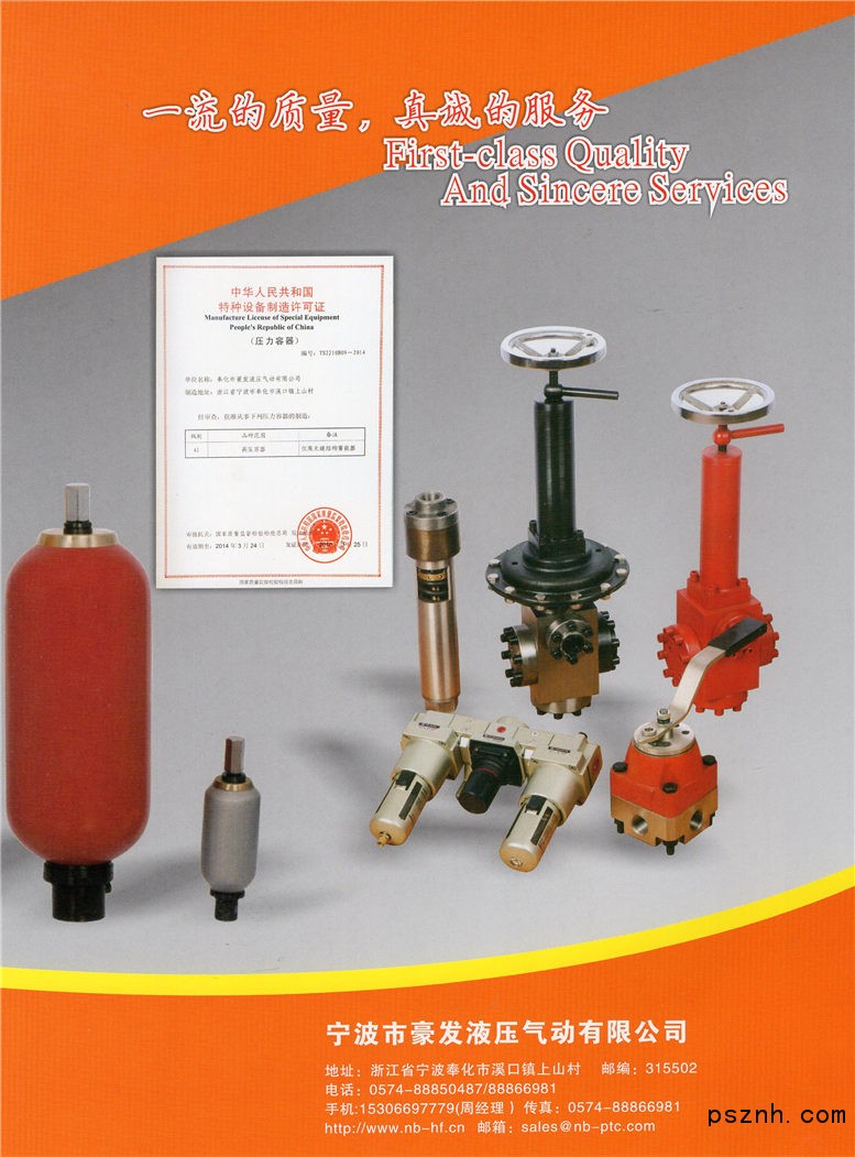 奉化市豪發(fā)液壓氣動(dòng)有限公司始建于一九七六年,系原國(guó)家機(jī)械部冶金局配套生產(chǎn)液壓件的主要廠家之一。位于浙江 奉化市,主營(yíng) 球閥、溢流閥、多路閥、轉(zhuǎn)閥等液壓氣動(dòng)元件 等。公司秉承“顧客至上,銳意進(jìn)取”的經(jīng)營(yíng)理念,堅(jiān)持“客戶第一”的原則為廣大客戶提供優(yōu)質(zhì)的服務(wù)。歡迎惠顧!