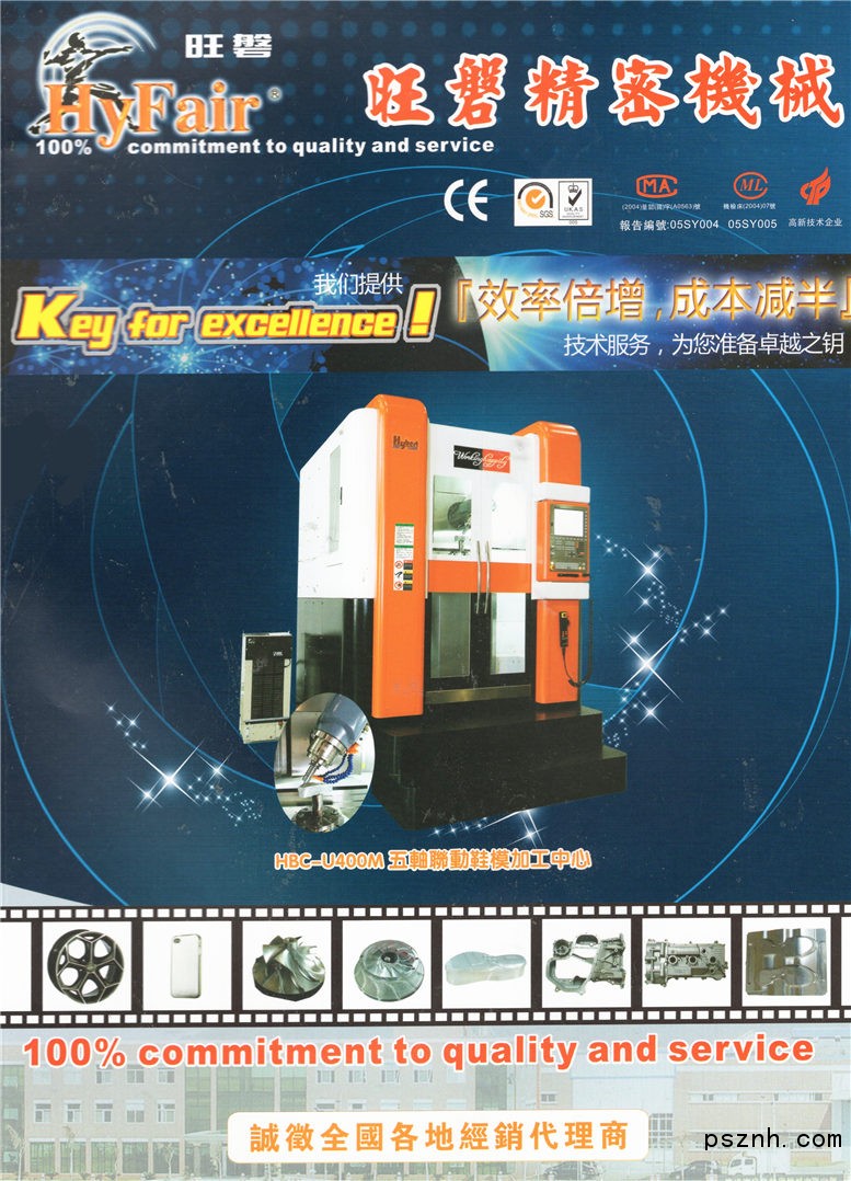 珠海市旺磐精密機械有限公司的“HYFAIR磨床”和“HYBEST加工中心”目前是國內的知名品牌產品,產品遠銷歐美、東南亞及國內各地。HYFAIR系列精密手動磨床已經連續(xù)十年全國產銷量第一,HYBEST加工中心系列產品也已經成功進入航空航天、汽車零部件制造、精密醫(yī)療器械、3C產品行業(yè)及電子商務領域。于2009年11月獲得高新技術企業(yè)證書。公司的“HYFAIR磨床”和“HYBEST加工中心”共擁有3項外觀設計專利及13項實用型設計專利;“HYBEST五軸聯(lián)動加工中心”共有2項外觀專利、2項發(fā)明專利及10項實用新型專利(正在申請中)。于2005年9月獲得ISO9001:2008管理認證證書