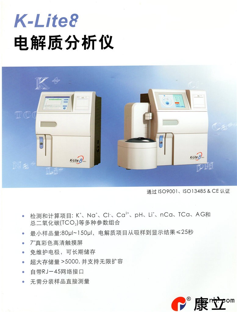 康立公司是中國(guó)領(lǐng)先的醫(yī)療設(shè)備專業(yè)提供商之一,是中國(guó)高新技術(shù)企業(yè)。康立的產(chǎn)品涵蓋臨床檢驗(yàn)分析領(lǐng)域,主要產(chǎn)品包括:電解質(zhì)分析儀、總二氧化碳分析儀、血?dú)怆娊赓|(zhì)分析儀、血凝分析儀等,用戶涉及各級(jí)醫(yī)院、疾控中心、血站、計(jì)生、科研、體育、食品安全系統(tǒng)及各類大專院校實(shí)驗(yàn)室等。