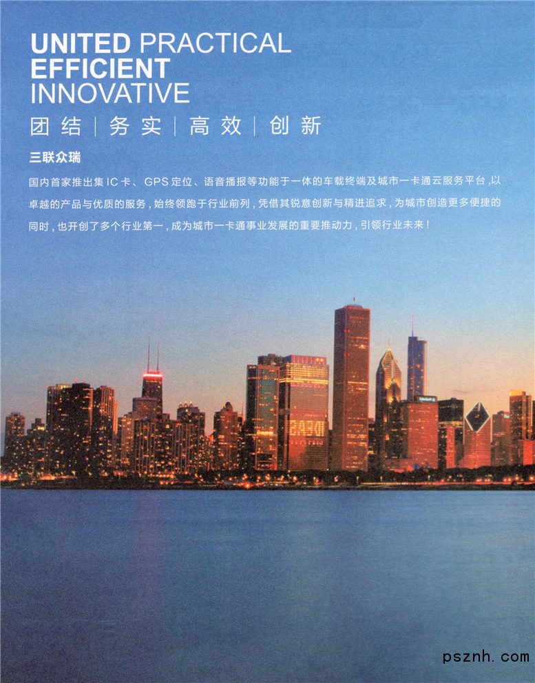多年來,三聯(lián)眾瑞以“團結(jié)、務實、高效、創(chuàng)新” 為企業(yè)發(fā)展的座佑銘,本著“質(zhì)量第一,服務第一,信譽第一”的服務 宗旨,為用戶提供滿意的產(chǎn)品,提供最滿意的服務。今后,三聯(lián)眾瑞仍然會圍繞公共交通科技發(fā)展這一主題繼續(xù)探索、研究,努力為公共交通行業(yè)的進一步發(fā)展做出更大的貢獻。同時,公司竭誠邀請各界朋友攜手合作,共同開拓美好的明天。