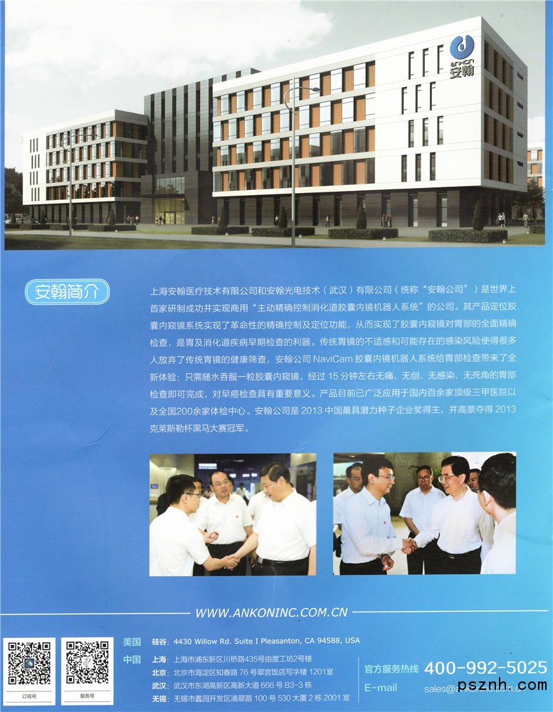 安翰光電技術(shù)(武漢)有限公司(以下稱“安翰光電”)是世界上第一家研制成功可主動(dòng)精確控制消化道膠囊內(nèi)鏡機(jī)器人并于2013年1月實(shí)現(xiàn)商業(yè)化應(yīng)用的中外合資高新技術(shù)企業(yè)。公司團(tuán)隊(duì)由國內(nèi)極具高科技孵化經(jīng)驗(yàn)的專家牽頭,集聚了首批中組部“千人計(jì)劃”特聘專家和多位留學(xué)硅谷杰出博士。