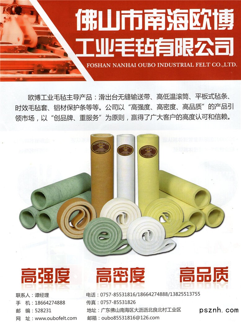 產(chǎn)品主要包括:滑出臺(tái)無縫輸送帶、高低溫滾筒、平板式氈條、時(shí)效毛氈套、鋁材保護(hù)條等等。公司以“高強(qiáng)度、高密度、高品質(zhì)”的產(chǎn)品引領(lǐng)市場(chǎng),以“創(chuàng)品牌、重服務(wù)”為原則,贏得了廣大客戶的高度認(rèn)可和信賴。