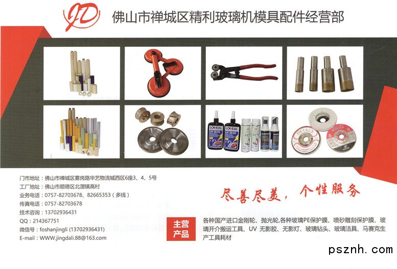 佛山市禪城區(qū)博大玻璃機(jī)械配件供應(yīng)站是國內(nèi)首家大型的進(jìn)口、國產(chǎn)玻璃磨輪、玻璃工具產(chǎn)品的供應(yīng)商,商品的產(chǎn)地包括有意大利、英國、西德、日本、韓國、臺(tái)灣和國內(nèi)等品牌廠家,品種繁多,規(guī)格齊全,能滿足玻璃行業(yè)制造、加工廠商和消費(fèi)者的不同需求。 公司自一九九六年開業(yè)以來,不斷開拓新市場,除經(jīng)銷國外不同牌子的磨輪、機(jī)械和工具外,還與各廠家建立聯(lián)營網(wǎng)絡(luò),按客戶的來樣訂造特殊規(guī)格的磨輪、機(jī)械和工具,并提供省內(nèi)送貨上門,省外還透過不同的途徑送到客戶手中的服務(wù)。長年為客戶的磨輪、機(jī)械和工具使用提供咨詢服務(wù),本著"用戶至上,物美價(jià)廉"的宗旨,竭誠為廣大用戶服務(wù),愿與各企業(yè)廠家攜手共進(jìn),互惠互利。