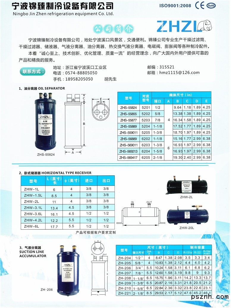 寧波錦臻制冷設(shè)備有限公司 油分離器 儲(chǔ)液器 氣液分離器 過(guò)濾器 壓力控制器