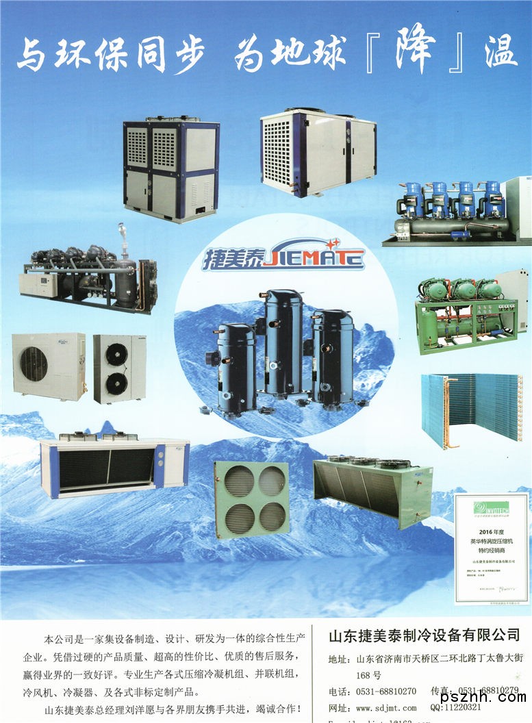 山東捷美泰愿與各界朋友攜手共進(jìn),竭誠(chéng)合作!致力于制冷事業(yè)的創(chuàng)新與發(fā)展。