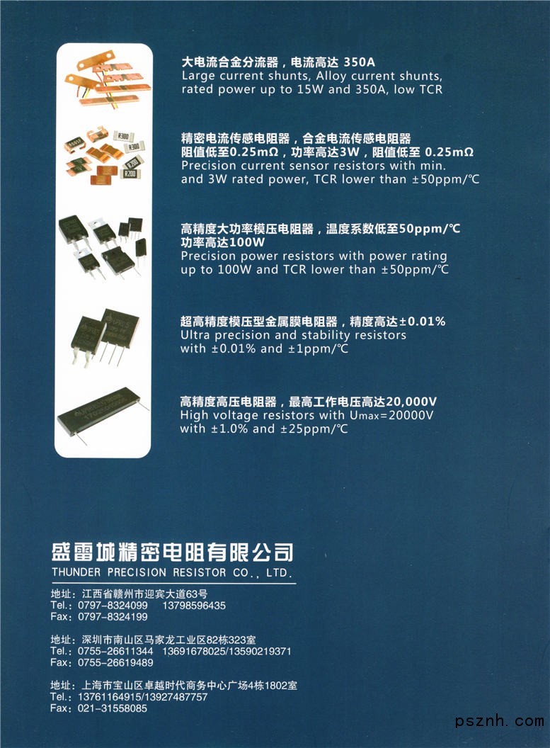 盛雷城精密電阻有限公司將繼續(xù)發(fā)展,為配合用戶不斷更新和發(fā)展需要推出一系列新產(chǎn)品,2016~2017年度已經(jīng)推出的有片狀金屬箔分流電阻,大功率36W合金分流電阻,線性電壓系數(shù)互感器分壓電阻、線性正溫度系數(shù)金屬箔熱敏電阻等一系列特種電阻器,為我國關(guān)鍵元件的國產(chǎn)化進程貢獻了自己的力量。