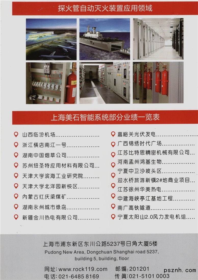 上海美石智能系統(tǒng)有限公司,是經(jīng)上海市人民政府批準成立的科技型股份制企業(yè),專注于研發(fā)制造感溫自啟動滅火裝置(火探管式自動探火滅火系統(tǒng))、智能消防火災報警系統(tǒng),通過公安部天津消防研究所檢測認證。致力于為石油化工、電力通信、交通運輸、機械制造等眾多行業(yè)提供現(xiàn)代化、自動化、智能化防火滅火服務,是中國感溫自啟動滅火系統(tǒng)的重點企業(yè)集團之一。