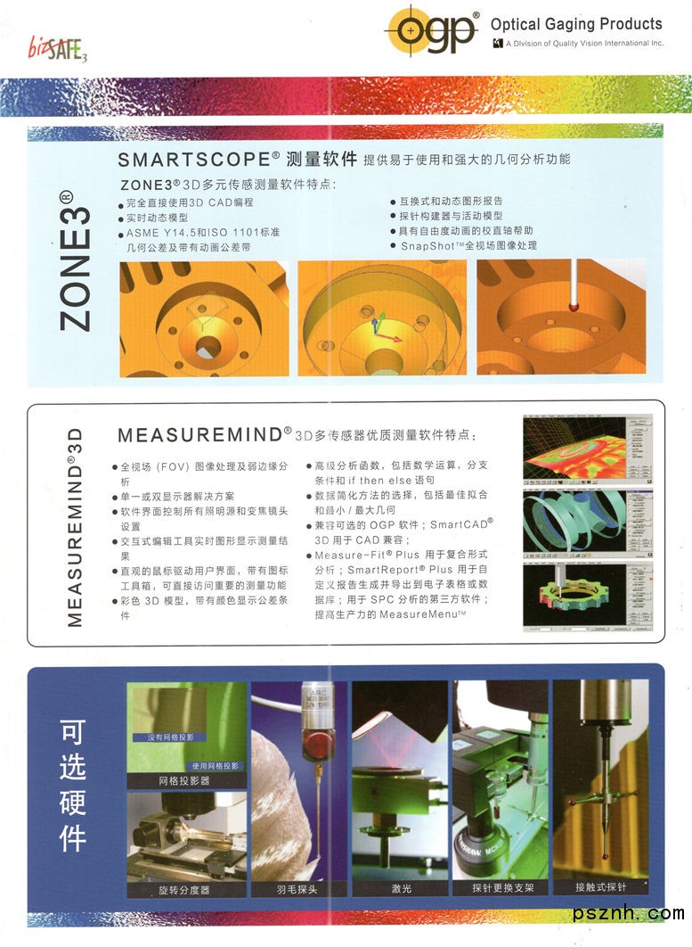 在1945年有一家新公司在紐約水牛城成立以支援剛具雛形的光學(xué)對比儀產(chǎn)業(yè)。Universal Engraving和Colorplate公司的工程師專業(yè)分部(ESD) 開始制造工作臺夾具裝置和測量對比圖。之后搬到紐約羅切斯特,ESD被一群雇員收購了,并且改組成為OGP公司(Optical Gaging Products, Inc.)和PGI公司(Projection Gages, Inc)。OGP因成為伊斯曼柯達公司的輪廓投影儀的獨家分銷商而開始了工作的關(guān)系。OGP迅速地擴展并且成為美國本土光學(xué)檢查的領(lǐng)導(dǎo)者。在1955年,其中一名OGP的創(chuàng)建者,愛德華包立德(Edward C. Polidor),成立了自動化測量公司(Automation Gages, Inc.),一家專門從事定制檢查設(shè)備的公司。沒多久自動化測量公司成為了博士倫公司包括光學(xué)對比儀和分析顯微鏡的全國(美國)總代理。1959年當伊斯曼柯達公司出售輪廓投影儀產(chǎn)品線時,OGP找到去底特律的方法并成為Ex-Cell-O公司的一部分。為了迎接未來的挑戰(zhàn),自動化測量公司展開了一項計劃,建立市場需要的核心技術(shù)的領(lǐng)導(dǎo)地位。在1969至1973期間,他們獲得常規(guī)測量研究公司(General Measurement Research, Inc.),一家數(shù)字遞增光柵系統(tǒng)生產(chǎn)商,視像檢查產(chǎn)品(Vision Inspection Products),制圖機和1:1縮放儀的設(shè)計和制造者,Ex-Cell-O公司和Bendix Measurement Division的光學(xué)投影對比儀產(chǎn)品,到最后,OGP于1973在紐約羅切斯特把所有運作結(jié)成一體。從那時開始,OGP就成為環(huán)球非接觸式測量技術(shù)的領(lǐng)導(dǎo)者。OGP和AG公司對重要和先進技術(shù)有著重大的貢獻。