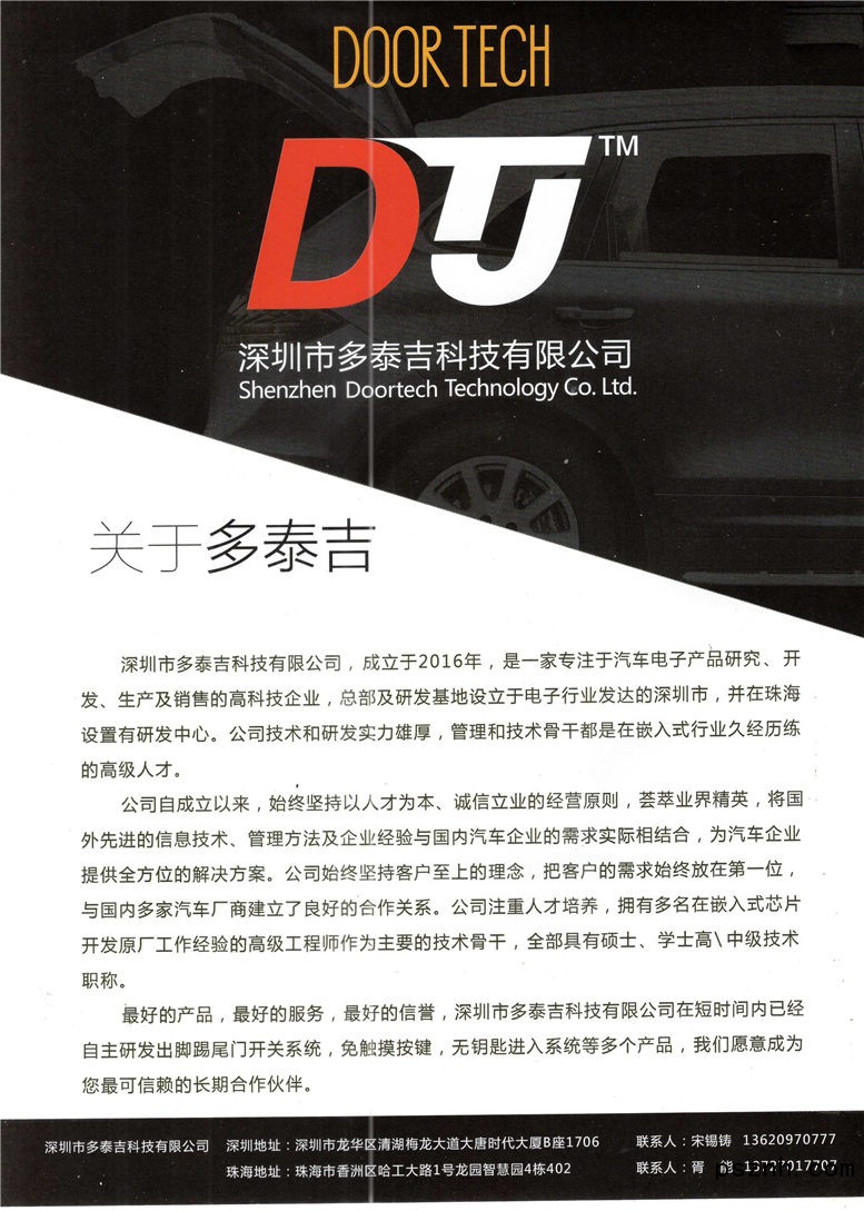 深圳市多泰吉科技有限公司辦公室地址位于中國個經(jīng)濟(jì)特區(qū),鵬城深圳,深圳 深圳市龍華新區(qū)民治街道民康路東明大廈419,于2016年10月20日在深圳市市場監(jiān)督管理局注冊成立,注冊資本為500萬元,在公司發(fā)展壯大的2年里,我們始終為客戶提供好的產(chǎn)品和技術(shù)支持、健全的售后服務(wù),我公司主要經(jīng)營電子通信與自動控制技術(shù)研究、技術(shù)開發(fā);機(jī)器人的技術(shù)研究、技術(shù)開發(fā);計(jì)算機(jī)技術(shù)開發(fā);機(jī)械工程設(shè)計(jì);模型設(shè)計(jì);智能化安裝工程設(shè)計(jì);通信技術(shù)研究開發(fā);電氣機(jī)械設(shè)備銷售;電線、電纜批發(fā);貨物及技術(shù)進(jìn)出口;智能機(jī)器銷售;電子產(chǎn)品銷售;信息系統(tǒng)集成技術(shù)開發(fā);信息技術(shù)咨詢;軟件開發(fā);電氣設(shè)備批發(fā);國內(nèi)貿(mào)易。(依法須經(jīng)批準(zhǔn)的項(xiàng)目,...,我們有好的產(chǎn)品和專業(yè)的銷售和技術(shù)團(tuán)隊(duì),我公司屬于深圳竹木加工公司行業(yè),如果您對我公司的產(chǎn)品服務(wù)有興趣,期待您在線留言或者來電咨詢