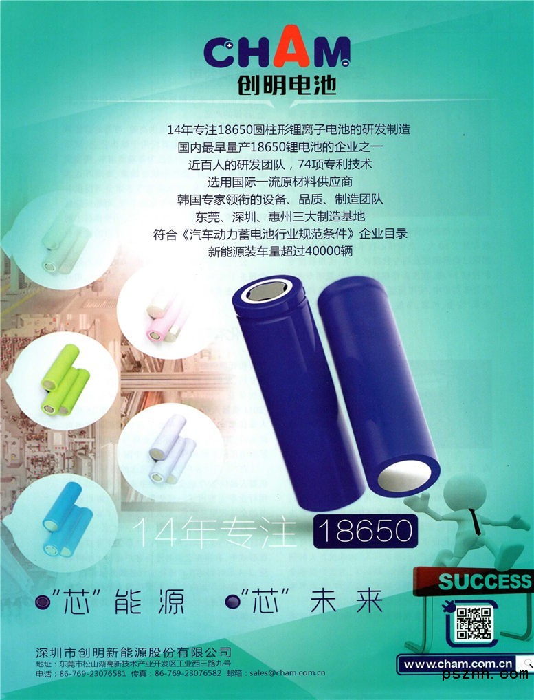 2016年6月東莞創(chuàng)明成功入選工信部發(fā)布的符合《汽車動力蓄電池行業(yè)規(guī)范條件》企業(yè)目錄(第四批)。目前,公司已有7款產(chǎn)品通過國家車用動力電池強制檢驗。吉利汽車(康迪)、浙江豪情(康迪)、南京金龍、上海申龍、揚州亞星、珠海廣通、陜浮通家、東風(fēng)連眾泰汽車等新能源車企,配套創(chuàng)明電芯的24款車型已進入國家新能源車推廣應(yīng)用推薦錄。創(chuàng)明電池新能源濘連裝車已達5萬輛,處于國內(nèi)新能源連應(yīng)用市場的領(lǐng)先地位,在18650圓柱鋰離子電池這一細(xì)分行業(yè) ,創(chuàng)明動力電池的出貨量排在前五位。