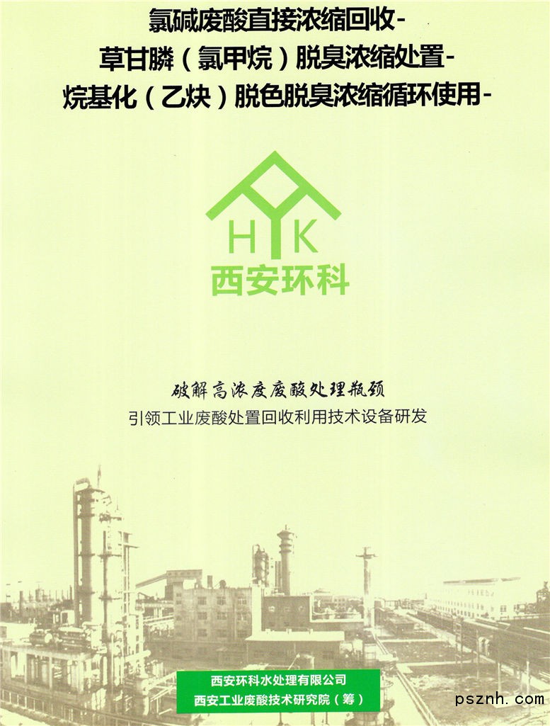 西安環(huán)科水處理有限公司經過多年研究,成功研發(fā)出應用于鋼鐵、鉛鋅冶煉、印刷電路板、制藥、冶金礦山、五氧化二釩等行業(yè)生產過程中產生的廢酸處理設備,研發(fā)了低濃度廢酸處理設備、高濃度有機廢酸處理設備(PVC、乙炔、烷基廢酸等)以及特種酸處理設備。為我國廢酸處理專業(yè)設備填補了空白,為節(jié)能減排做出非常大的貢獻。