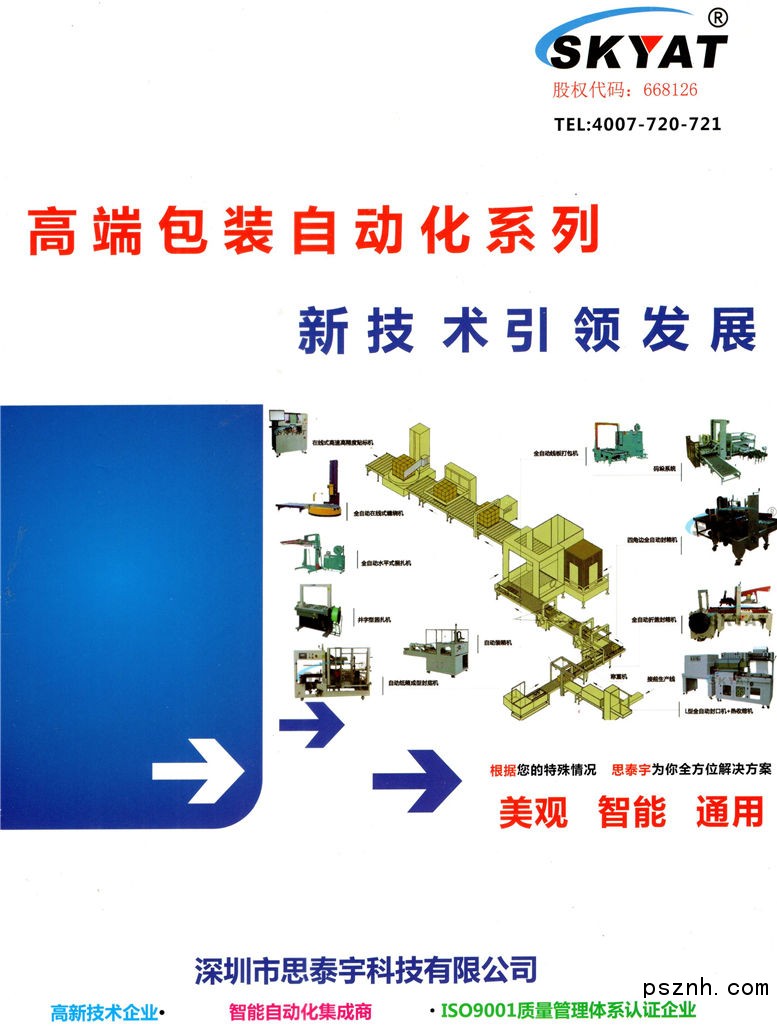 深圳市思泰宇科技有限公司(www.skyat.com.cn),主要從事高端包裝設(shè)備、檢測設(shè)備、汽車智能組裝線、自動(dòng)化設(shè)備、激光加工設(shè)備、安防及交通設(shè)備的研發(fā)、生產(chǎn)、銷售。陸續(xù)通過深圳市高新技術(shù)企業(yè)、國家高新技術(shù)企業(yè)、ISO9001質(zhì)量管理體系認(rèn)證。