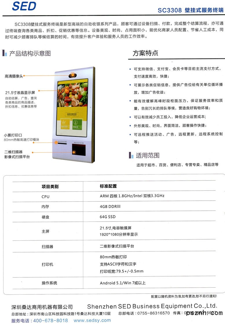 深圳桑達(dá)商用機(jī)器有限公司在桑達(dá)股份公司雄厚的技術(shù)和資金的支持下取得快速發(fā)展,現(xiàn)有員工近400人,其中40%以上是具有碩士、本科學(xué)歷或高級職稱的高素質(zhì)人才,建立起先進(jìn)的管理、研發(fā)、生產(chǎn)和質(zhì)量保證體系,自主研發(fā)生產(chǎn)的POS收款機(jī)、稅控收款機(jī)、網(wǎng)絡(luò)自助終端機(jī)、移動(dòng)收銀等系列產(chǎn)品,擁有強(qiáng)大的服務(wù)團(tuán)隊(duì),為客戶提供專業(yè)的IT運(yùn)維服務(wù)。在深圳高新技術(shù)園,公司擁有近萬平方米的專業(yè)生產(chǎn)廠房,具備完善的產(chǎn)品檢測能力,所有產(chǎn)品所執(zhí)行的企業(yè)標(biāo)準(zhǔn)完全符合或超過國家標(biāo)準(zhǔn)?,F(xiàn)已形成年產(chǎn)10萬臺/套POS產(chǎn)品及100萬臺稅控產(chǎn)品的生產(chǎn)能力。特別是立足于桑達(dá)公司二十余年的收款機(jī)經(jīng)營、開發(fā)和生產(chǎn)經(jīng)驗(yàn),成為國內(nèi)收款機(jī)行業(yè)的奠基者之一。公司自一九九六年起在市場上不斷推出美觀實(shí)用、經(jīng)濟(jì)和超強(qiáng)穩(wěn)定的SED系列POS收款機(jī),產(chǎn)品受到信息產(chǎn)業(yè)部、內(nèi)貿(mào)部等有關(guān)國家部委的多次肯定和廣大用戶的熱烈歡迎。公司將“真誠相伴、共創(chuàng)未來”的信念融入二十余年的POS機(jī)生產(chǎn)、銷售和服務(wù)的歷程。全體員工堅(jiān)持以ISO9001質(zhì)量保證體系和ISO14001環(huán)境體系為基本要求,嚴(yán)格管理,以客戶的需求為導(dǎo)向,與客戶達(dá)成雙贏為目標(biāo),不斷為客戶提供更優(yōu)質(zhì)的產(chǎn)品和更體貼的服務(wù)。經(jīng)過二十多年的辛勤耕耘,桑達(dá)產(chǎn)品遍布全國各地,東至舟山群島、北到大慶、南及海南島、西登青藏高原、新疆石河子,所有設(shè)備歷經(jīng)各種環(huán)境考驗(yàn),盡顯卓越品質(zhì)。