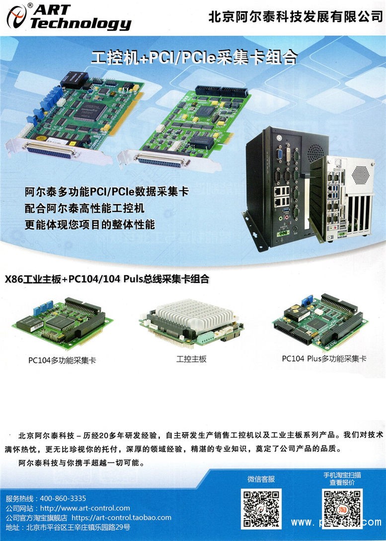 阿爾泰科技早期專注于研制、生產(chǎn)基于PC機(jī)的數(shù)據(jù)采集產(chǎn)品,經(jīng)過(guò)十余年的不斷努力,公司自主研發(fā)、生產(chǎn)的產(chǎn)品已從USB、PCI、ISA總線數(shù)據(jù)采集板卡拓展到十余種總線的數(shù)采產(chǎn)品(如CPCI、PXI、PCI-E、PC104、PC104+等)、分布式采集產(chǎn)品、嵌入式主板、X86主板和系統(tǒng)等。阿爾泰科技站在數(shù)據(jù)采集技術(shù)的前沿,充分發(fā)揮自身在產(chǎn)品研發(fā)和制造上的優(yōu)勢(shì),以專業(yè)的技術(shù)為各界用戶提供了高品質(zhì)、經(jīng)濟(jì)化的產(chǎn)品解決方案,其產(chǎn)品已被廣泛地應(yīng)用于環(huán)境、電力、醫(yī)療設(shè)備、通訊、航天、軍工等領(lǐng)域。在致力于硬件研發(fā)生產(chǎn)的同時(shí),阿爾泰也提供多種測(cè)量軟件,用戶可以方便地使用VC、LabVIEW等語(yǔ)言平臺(tái)在Windows/98/2000/XP/2003、Win7、Win8、WinCE、Linux等多種操作系統(tǒng)下快速地構(gòu)建富有個(gè)性化的測(cè)量系統(tǒng)。