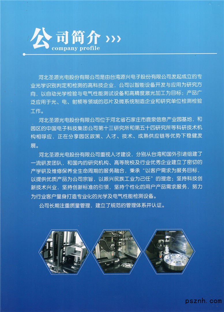 河北圣源光電股份有限公司主產(chǎn)品有金屬探測(cè)器,金屬探測(cè)儀,金屬檢測(cè)機(jī),金屬檢測(cè)儀,檢針機(jī),金屬分離器,X射線異物檢測(cè)機(jī),X射線安檢機(jī),重量選別機(jī),重量分級(jí)機(jī)等設(shè)備,公司位于交通便利、京津冀一體化的河北省石家莊市,是一家由臺(tái)灣源興電子股份有限公司發(fā)起成立的專(zhuān)業(yè)光學(xué)識(shí)別判定的高科技企業(yè)。近期公司和園區(qū)的中國(guó)電子科技集團(tuán)公司第十三研究所和第五十四研究所等科研技術(shù)機(jī)構(gòu)相呼應(yīng),共同利用園區(qū)極為方便的人才技術(shù)、產(chǎn)業(yè)政策和高度成熟的供應(yīng)鏈已研制出一系列適合各類(lèi)客戶(hù)需求的檢測(cè)設(shè)備,為眾多客戶(hù)提供了各種完善的解決方案和大量的產(chǎn)品和服務(wù),擁有極為廣泛的客戶(hù)群體,產(chǎn)品直接銷(xiāo)售到全國(guó)各地,并取得了一定的成績(jī),在同行業(yè)中享有很高的知名度。