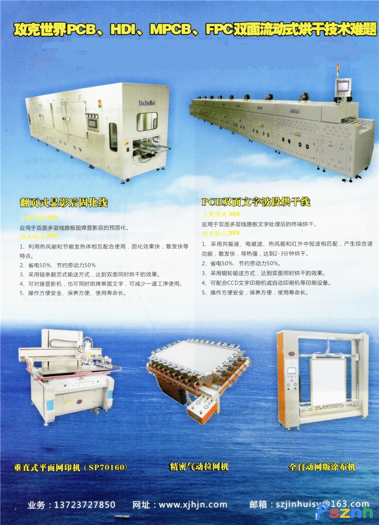 本公司生產(chǎn)的波段隧道爐系列有PCB雙面阻焊波段烘干線、翻頁(yè)式顯影后固化線、PCB雙面文字波段烘干線、MPCB FPC單面波段烘干線,根據(jù)客戶的產(chǎn)能及場(chǎng)地來(lái)選擇不同的倉(cāng)數(shù)(即不同的烘干長(zhǎng)度)。 本公司生產(chǎn)的烘干線在使用中達(dá)到以下優(yōu)點(diǎn):縮短了烘烤時(shí)間、節(jié)能達(dá)到55%以上、可對(duì)接自動(dòng)化設(shè)備連線生產(chǎn)、減少大批勞動(dòng)力、提高成品率、節(jié)約生產(chǎn)場(chǎng)地、提高產(chǎn)能、減少輸送掛具、穩(wěn)定產(chǎn)品質(zhì)量、降低生產(chǎn)成本、提高利潤(rùn)5%至10%、安全防火排泄暢通。