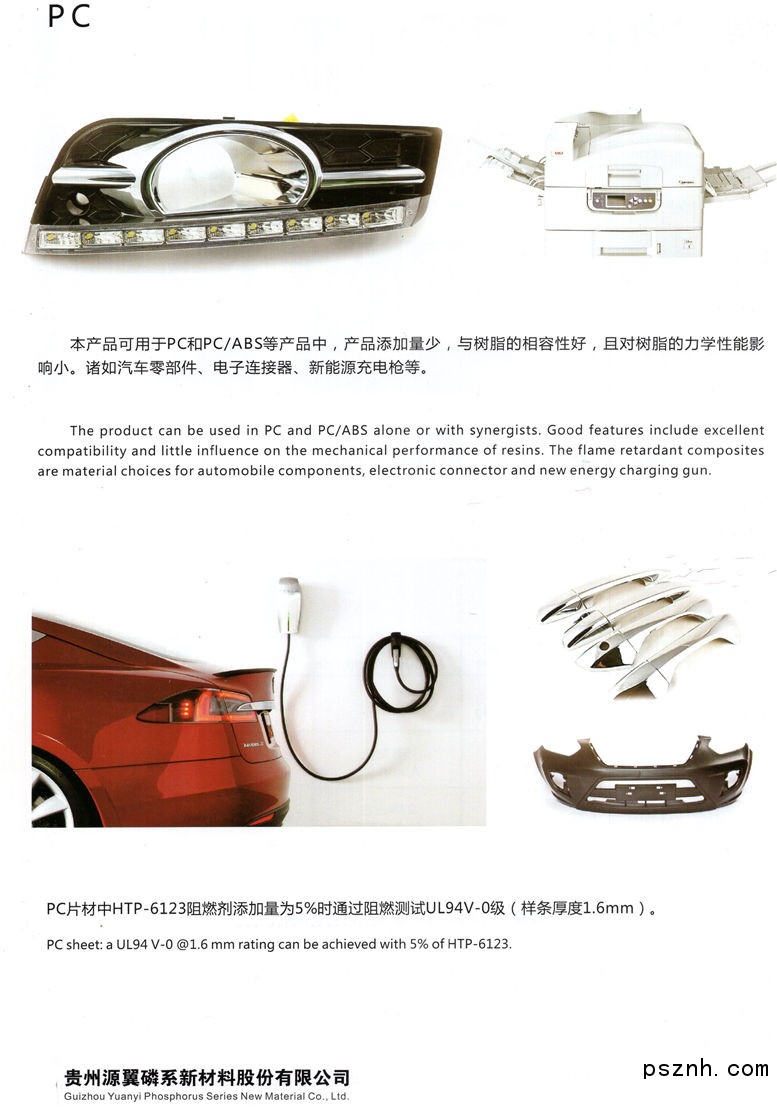公司現(xiàn)有的磷系阻燃劑HTP-6123系列產(chǎn)品,技術(shù)國(guó)內(nèi)首創(chuàng),國(guó)際領(lǐng)先,具有環(huán)保無(wú)鹵,熱穩(wěn)定性高、可熔融等優(yōu)異的性能,可廣泛應(yīng)用于高溫尼龍、聚酯、聚碳酸酯等產(chǎn)品中,如汽車(chē)零部件、新能源充電槍、窗簾、墻布、地毯等。