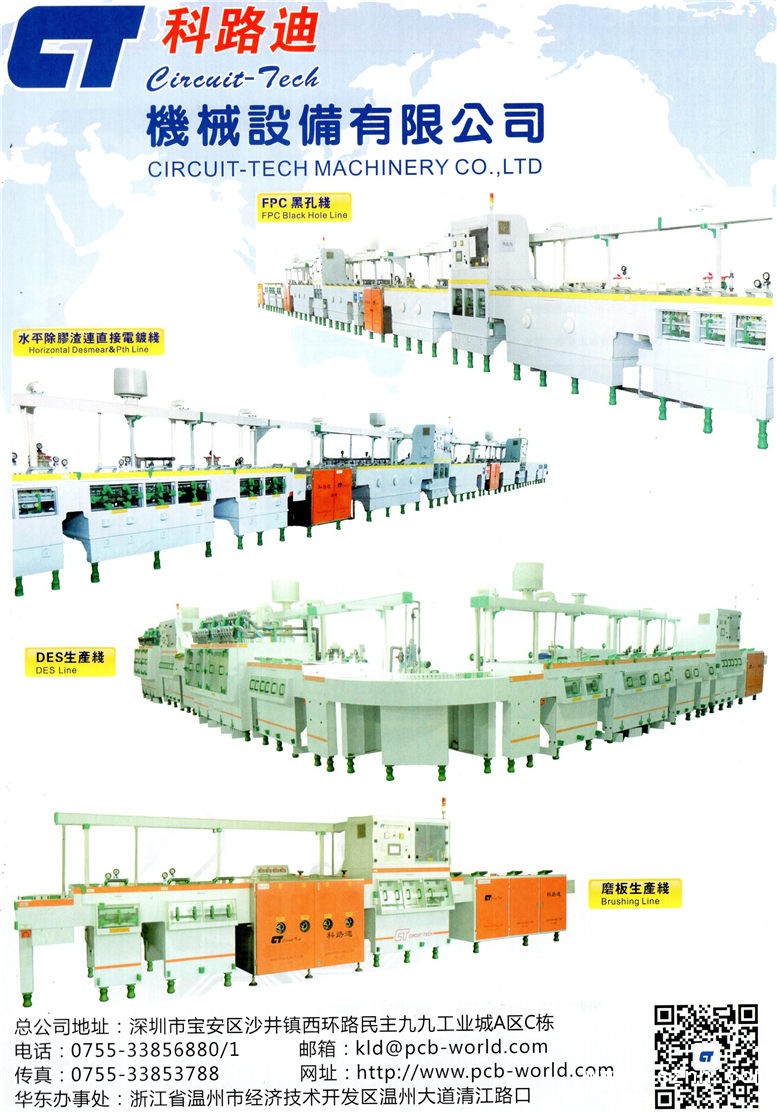科路迪公司主要產(chǎn)品包括:各制程前/中/后處理(磨板/火山灰/噴砂機/超粗化)生產(chǎn)線;內(nèi)/外層及FPC、LCD之DES生產(chǎn)線;水平棕化線;水平除膠 渣連導(dǎo)電膠線、水平黑孔線;外層SES生產(chǎn)線。其它產(chǎn)品還包括:成品清洗生產(chǎn)線;OSP(抗氧化)生產(chǎn)線;噴錫前/后理生產(chǎn)線;LCD 及五金蝕刻等設(shè)備;自動化周邊設(shè)備如:各式自動上下料機、太陽式冷卻翻板機、履帶式收放板機、90度轉(zhuǎn)角轉(zhuǎn)向機、粘塵機、全自動暫存機、銅粉過濾機等。
