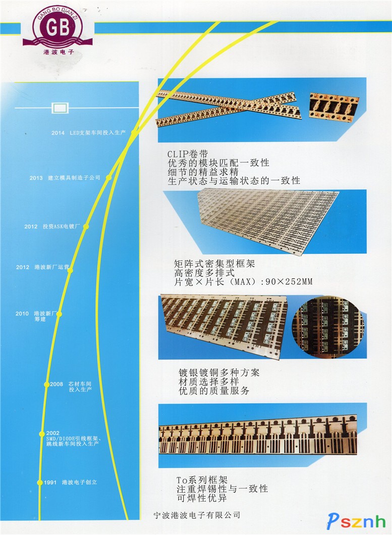 本公司生產(chǎn)的引線框架主要型號有GBJ、GBL、KBJ、GBU、GBP、ZB、SMA、SMB、SMC、DIP、MiNi DIP、SOT、SOD、TO220、TO3P、T0126、全套整流二極管元件,我們始終堅守“互惠互利,共同發(fā)展”的經(jīng)營理念和“以精良的產(chǎn)品質(zhì)量使用戶放心,以誠信的服務(wù)使客戶滿意”的質(zhì)量方針,與國內(nèi)外大中型半導(dǎo)體生產(chǎn)企業(yè)建立了長期良好的合作關(guān)系,產(chǎn)品質(zhì)量和服務(wù)質(zhì)量均得到了客戶的好評。
