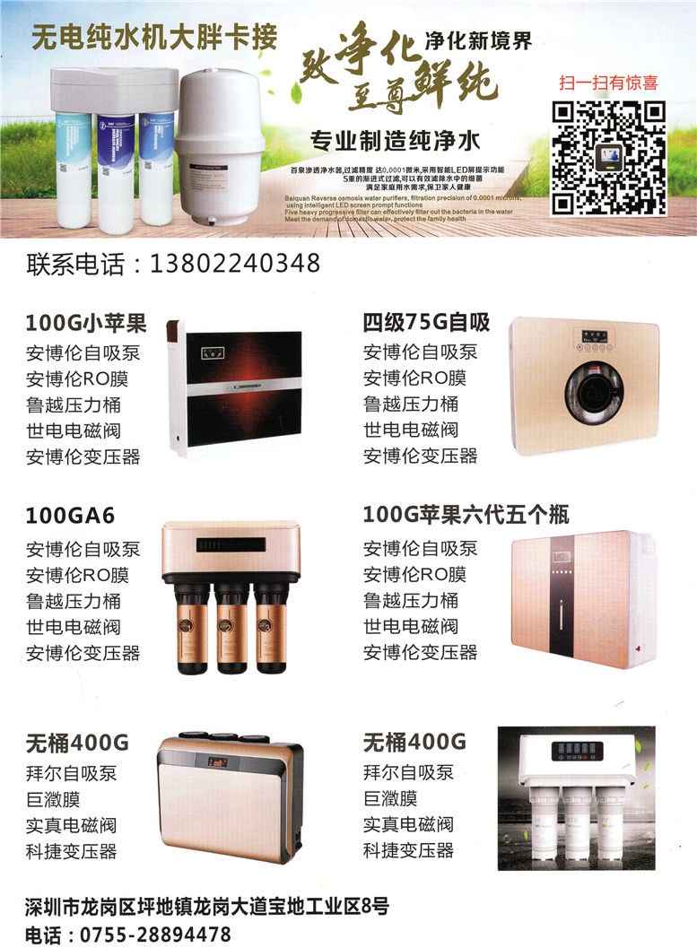 深圳百泉凈水科技有限公司 家用純水設備 家用超濾機 商用凈水器 飲水機/管線機 廚房不銹鋼凈水器 前置過濾器 濾沁