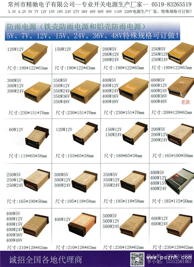 常州市精馳電子有限公司位于常州鐘樓區(qū),東臨中國西電工業(yè)園50米,西臨常州飛機(jī)場,北臨常州高鐵北站,地理位置優(yōu)越,交通方便,環(huán)境優(yōu)美,專業(yè)生產(chǎn)防雨電源、裸版電源、LED電源、顯示屏電源、發(fā)光字專用電源,產(chǎn)品系列從15W-3000W涵蓋2000余種規(guī)格。