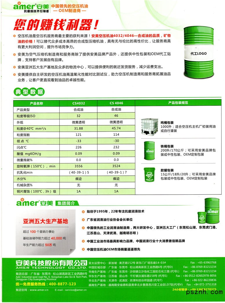 安美科技股份有限公司始創(chuàng)于1995年,成立至今已有20多年歷史,2015年3月由東莞市安美潤(rùn)滑科技有限公司變更而來(lái)。安美,二十多年來(lái)一直專注于潤(rùn)滑、防銹、清洗領(lǐng)域的研究和發(fā)展,主要產(chǎn)品包括工業(yè)潤(rùn)滑油、金屬加工液、清洗劑、防銹劑、車用油等,集團(tuán)以“遵道愛(ài)人,厚德潤(rùn)物”為經(jīng)營(yíng)理念,憑借多年的工業(yè)耗材領(lǐng)域潤(rùn)滑專家經(jīng)驗(yàn),通過(guò)向工程機(jī)械、電力、汽車、冶金、鋼鐵、模具、機(jī)床、壓鑄等行業(yè)提供優(yōu)質(zhì)、穩(wěn)定的化學(xué)產(chǎn)品,不斷擴(kuò)大服務(wù)領(lǐng)域,加速集團(tuán)的發(fā)展規(guī)模。