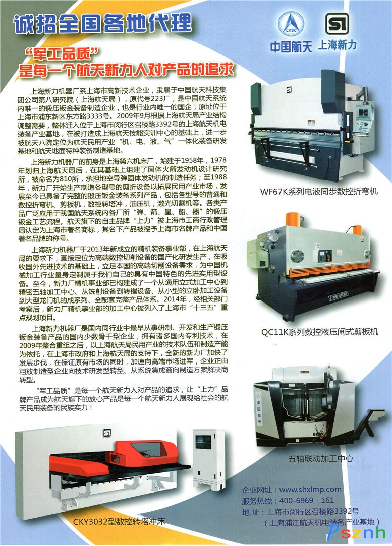 重組前上海新力機(jī)器廠的前身是上海第六機(jī)床廠,始建于1958年,1978年劃歸上海航天局后,在其基礎(chǔ)上組建了固體火箭發(fā)動(dòng)機(jī)設(shè)計(jì)研究所,被命名為810所,承擔(dān)地空導(dǎo)彈固體發(fā)動(dòng)機(jī)的制造任務(wù);至1988年,新力廠開始生產(chǎn)制造各型號(hào)的剪折設(shè)備以拓展民用產(chǎn)業(yè)市場(chǎng),發(fā)展至今已具備了完整的鍛壓鈑金裝備系列產(chǎn)品,包括各型號(hào)的普通和數(shù)控折彎?rùn)C(jī)、剪板機(jī),數(shù)控轉(zhuǎn)塔沖,油壓機(jī),激光切割機(jī)等。各類產(chǎn)品廣泛應(yīng)用于我國(guó)航天系統(tǒng)內(nèi)各廠所“彈、箭、星、船、器”的鍛壓鈑金工藝流程。航天旗下的自主品牌“上力”被上海市工商行政管理局認(rèn)定為上海市著名商標(biāo),其名下產(chǎn)品被授予上海市名牌產(chǎn)品和中國(guó)著名品牌的稱號(hào)。