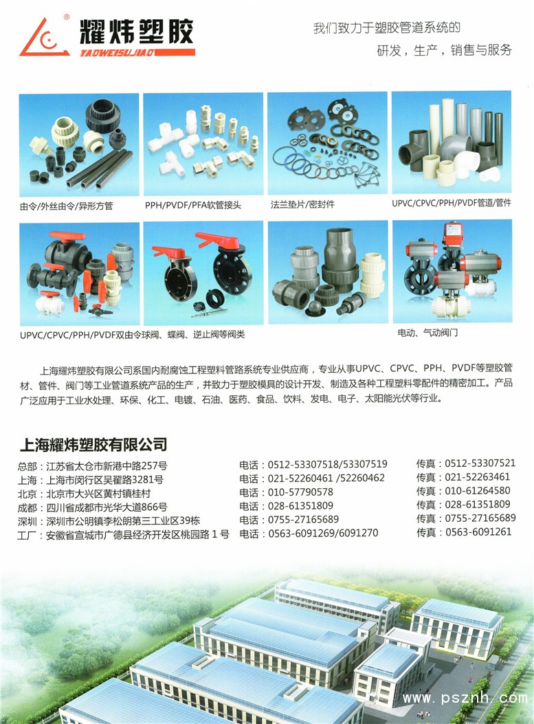 公司擁有精湛的工藝,國際化的管理體系,多年來在中國市場不斷探索和研究,開發(fā)及生產(chǎn)適合工業(yè)、民用等各種領域上應用的塑料管材、配件及閥門,提供的產(chǎn)品材質(zhì)有PVC-U、CPVC、PPH、PVDF等,生產(chǎn)標準更加多元化,有國標(GB),美標(ANSI),日標(JIS),臺標(CNS)等,能適合客戶的各種需求,配套齊備,使用戶能方便快捷的選購合適的產(chǎn)品。